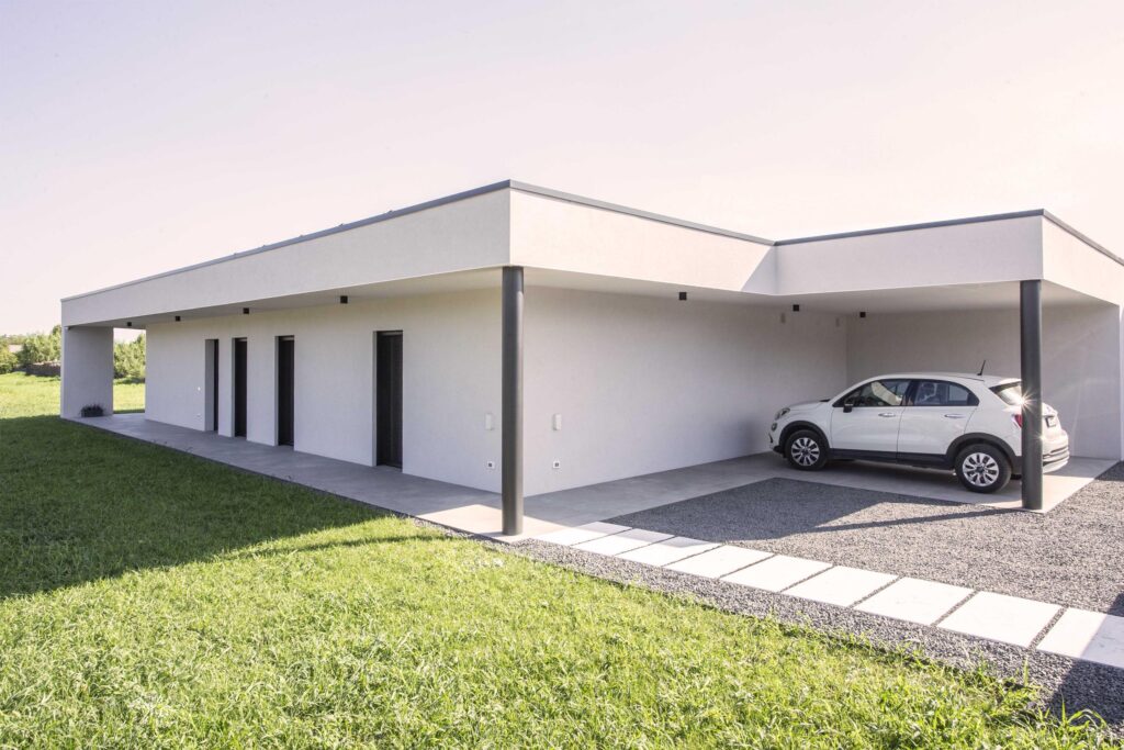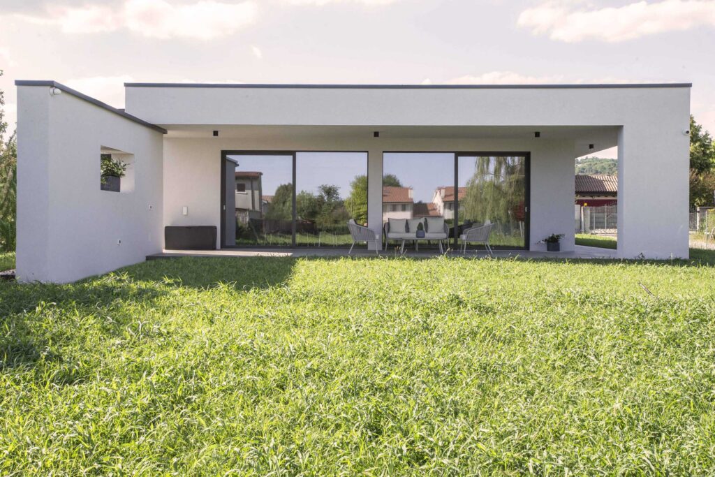 Coibentazione: Isolamento a tetto 24 cm Fibra di legno HD 170kg/mc a parete 20 cm Lana di roccia + 6 cm di Fibra di legno HD 265kg/mc.